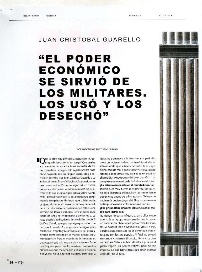"El poder económico se sirvió de los militares. Los usó y los desechó" [entrevista] [artículo] Ignacio Ossa.