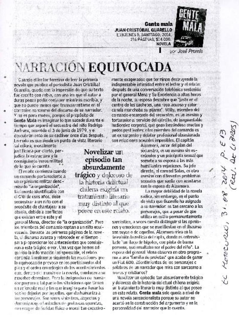 Narración equivocada [artículo] José Promis.