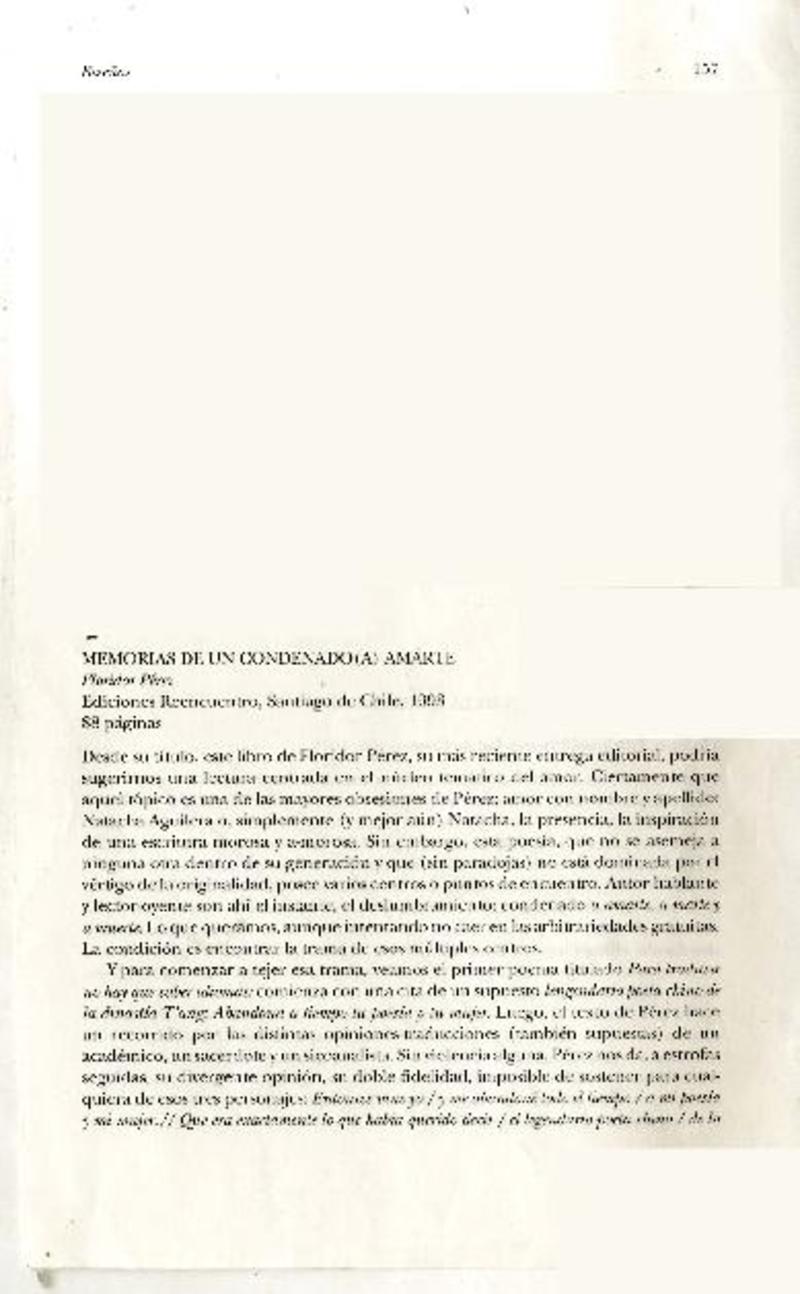 Memorias de un condenado (a) amante [artículo] Marelo Pellegrini.