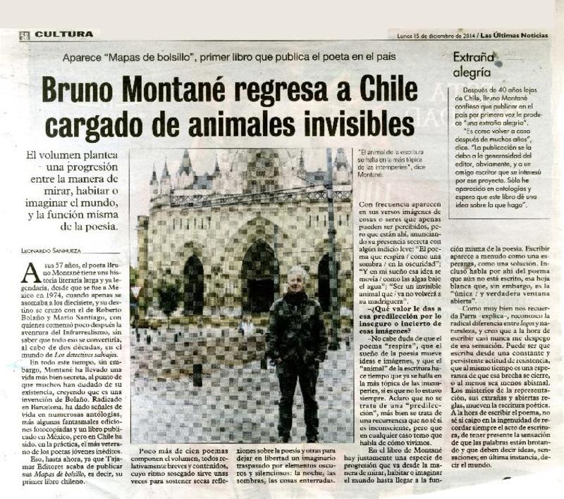 Bruno Montané regresa a Chile cargado de animales invisibles [artículo] Leonardo Sanhueza