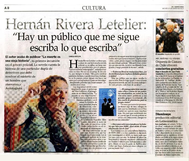 Hernán Rivera Letelier: "Hay un público que me sigue escriba lo que escriba" [artículo] Camila Ortiz M.