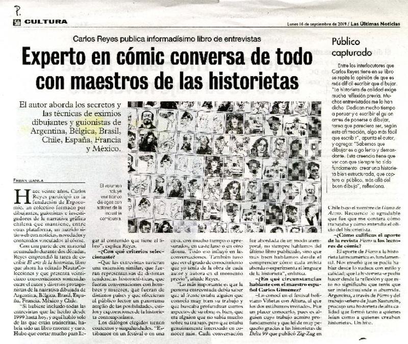 Experto en cómic conversa de todo con maestros de las historietas [entrevista] [artículo] : Fabián Llanca.