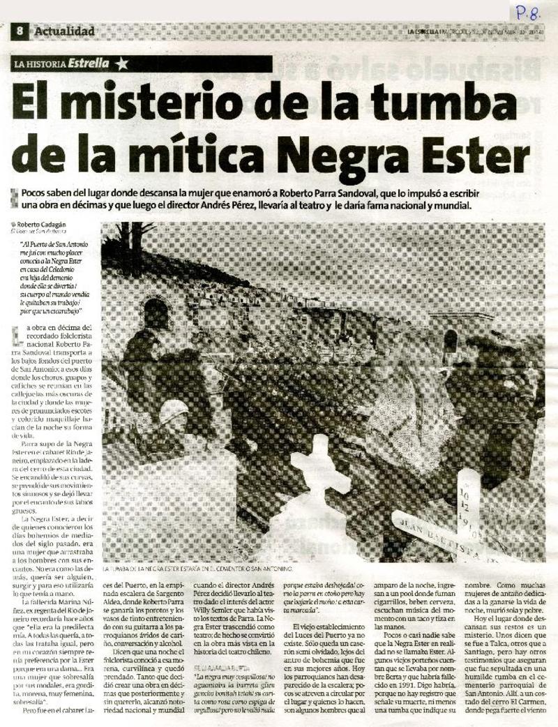 El misterio de la tumba de la mítica Negra Ester [artículo] Roberto Cadagán