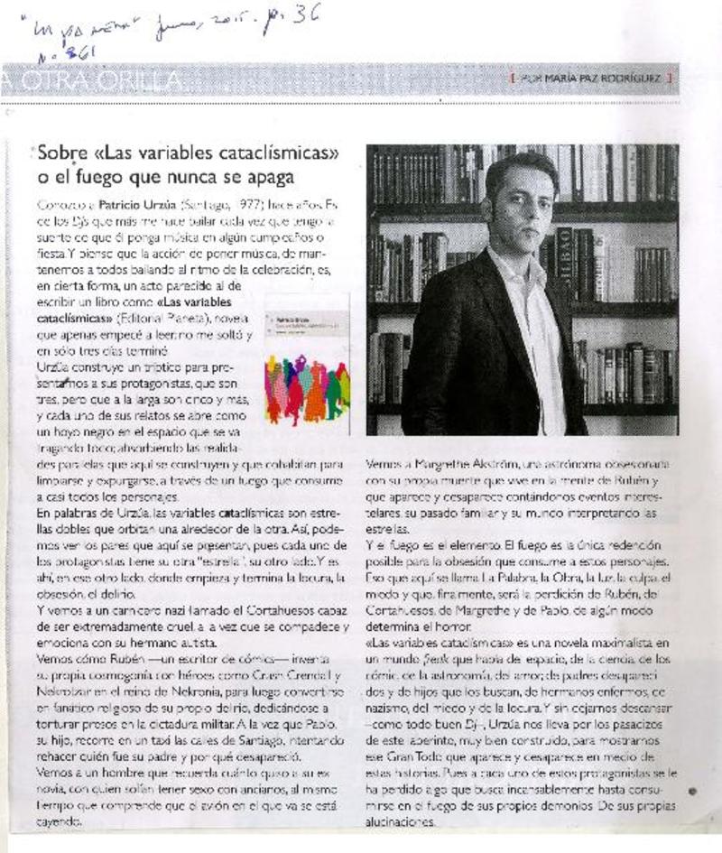 Sobre "Las variables cataclísmicas" o el fuego que nunca se apaga [artículo] María Paz Rodríguez.