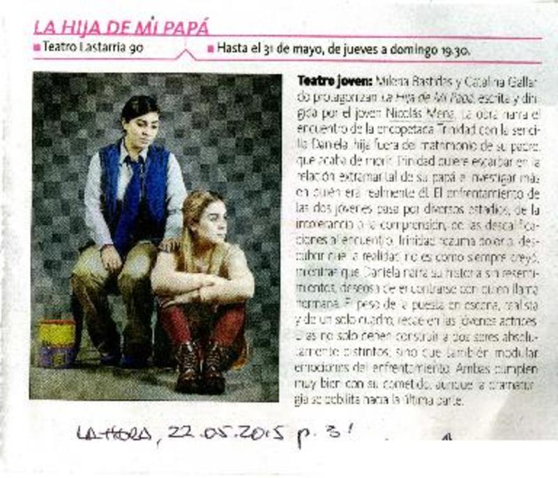 Dos generaciones suben a escena [artículo] Marietta Santí.