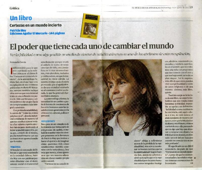 El poder que tiene cada uno de cambiar el mundo [artículo] Fernanda García.