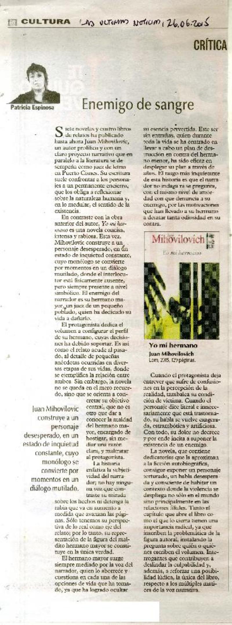 Enemigo de sangre [artículo] Patricia Espinosa.