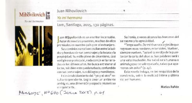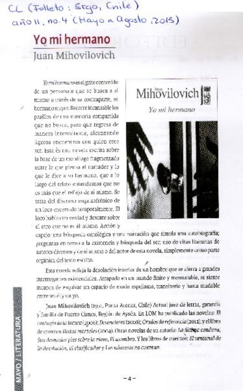 Autores chilenos - Mihovilovich Hernández, Juan - Yo mi hermano