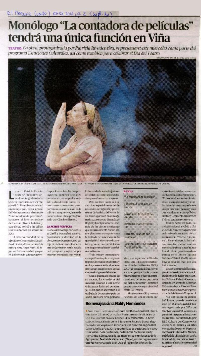 Monólogo "la contadora de películas" tendrá una única función en Viña [artículo].