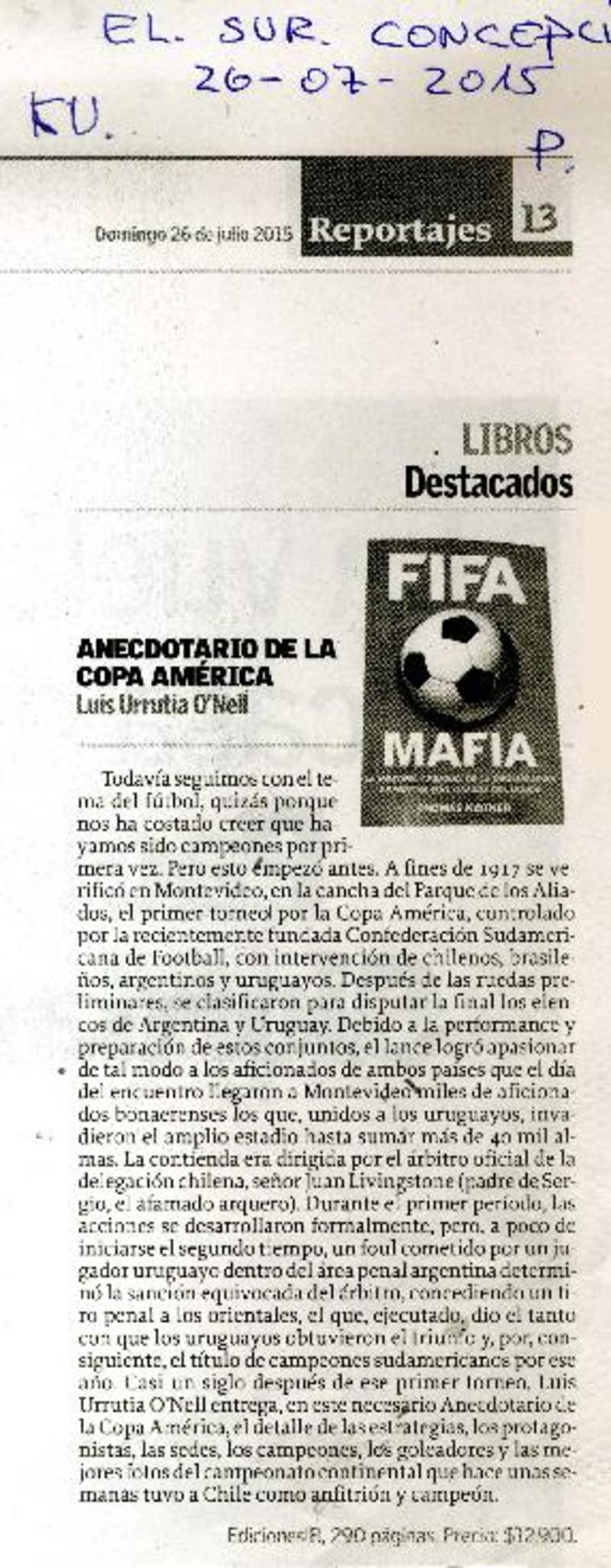 Autores chilenos - Urrutia O'Nell, Luis - Anecdotario de la Copa América