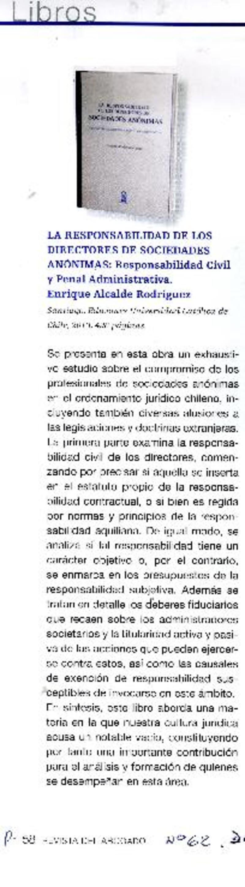 Alcalde Rodríguez, Enrique - Autores chilenos - La responsabilidad de los directores de sociedades anónimas
