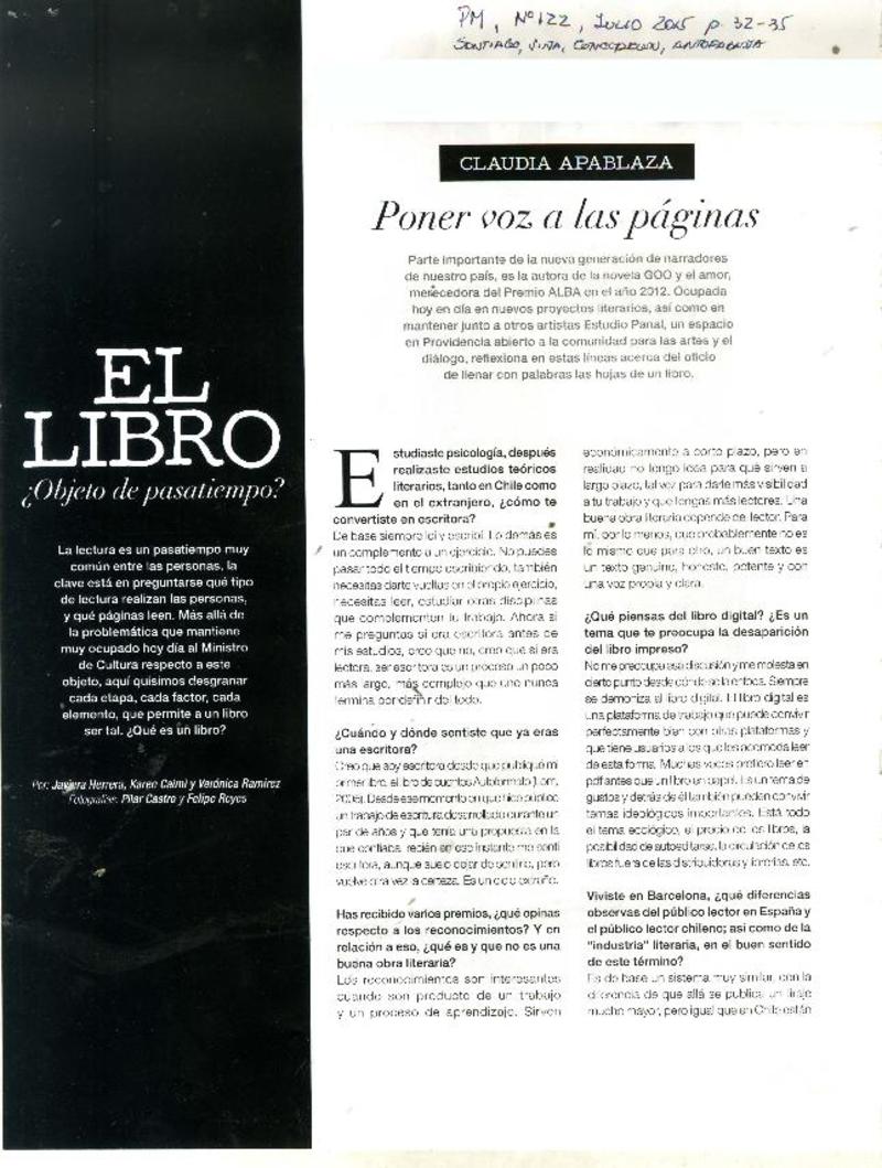 El libro ¿objeto de pasatiempo? [entrevista] [artículo] Javierra Herrera, Karen Caimi y Verónica Ramírez.