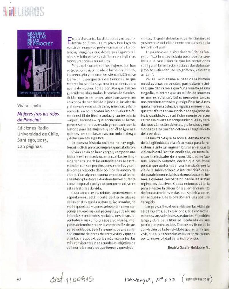 Mujeres tras las rejas de Pinochet [artículo] Beatriz García-Huidobro M.