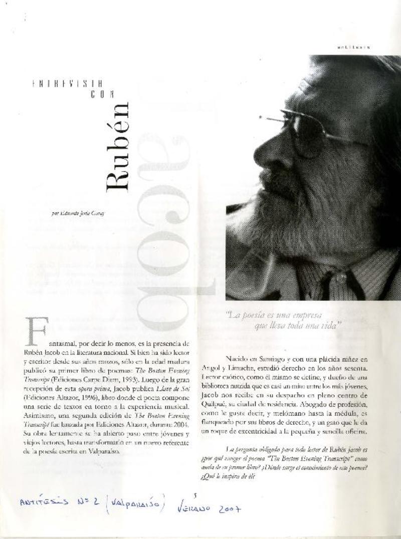 Entrevista con Rubén Jacob [entrevista] [artículo] Eduardo Jeria Garay.