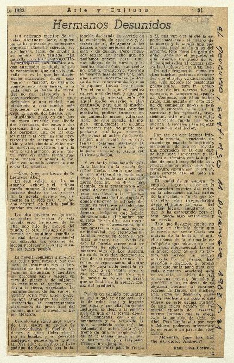 Hermanos desunidos [artículo] Raúl Silva Castro.