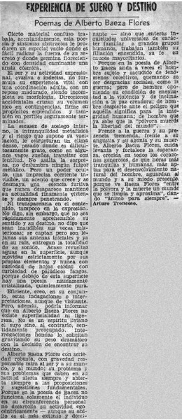 Experiencia de sueño y destino - Baeza Flores, Alberto - Autores chilenos