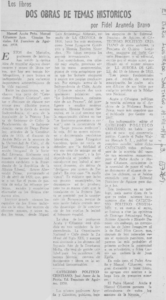 Dos obras de temas históricos [artículo] Fidel Araneda Bravo.