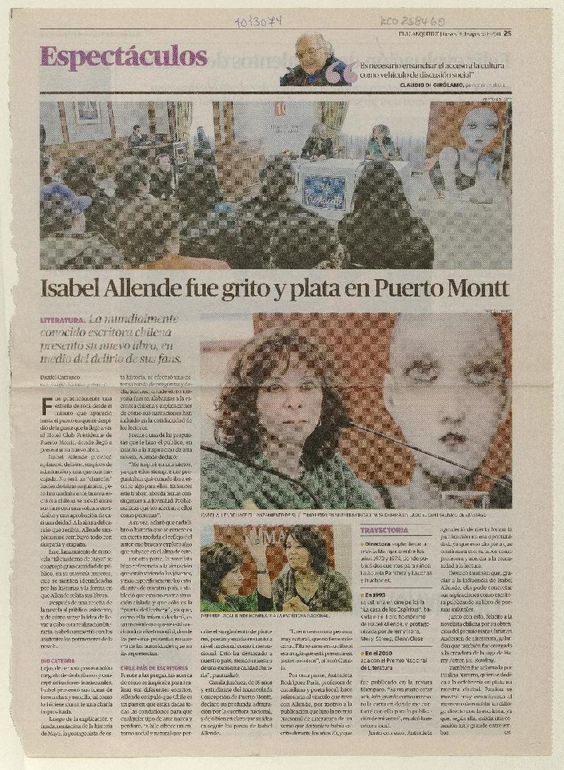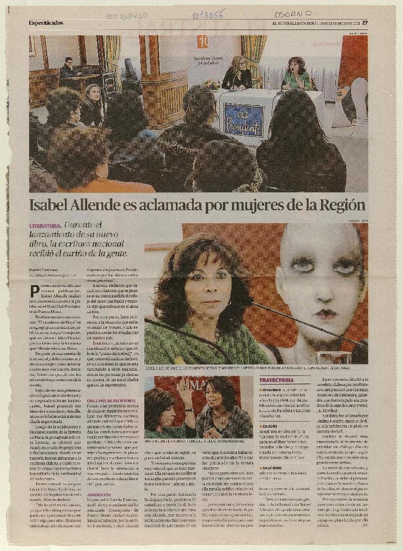 Isabel Allende es aclamada por mujeres de la región [artículo] Daniel Carrasco.