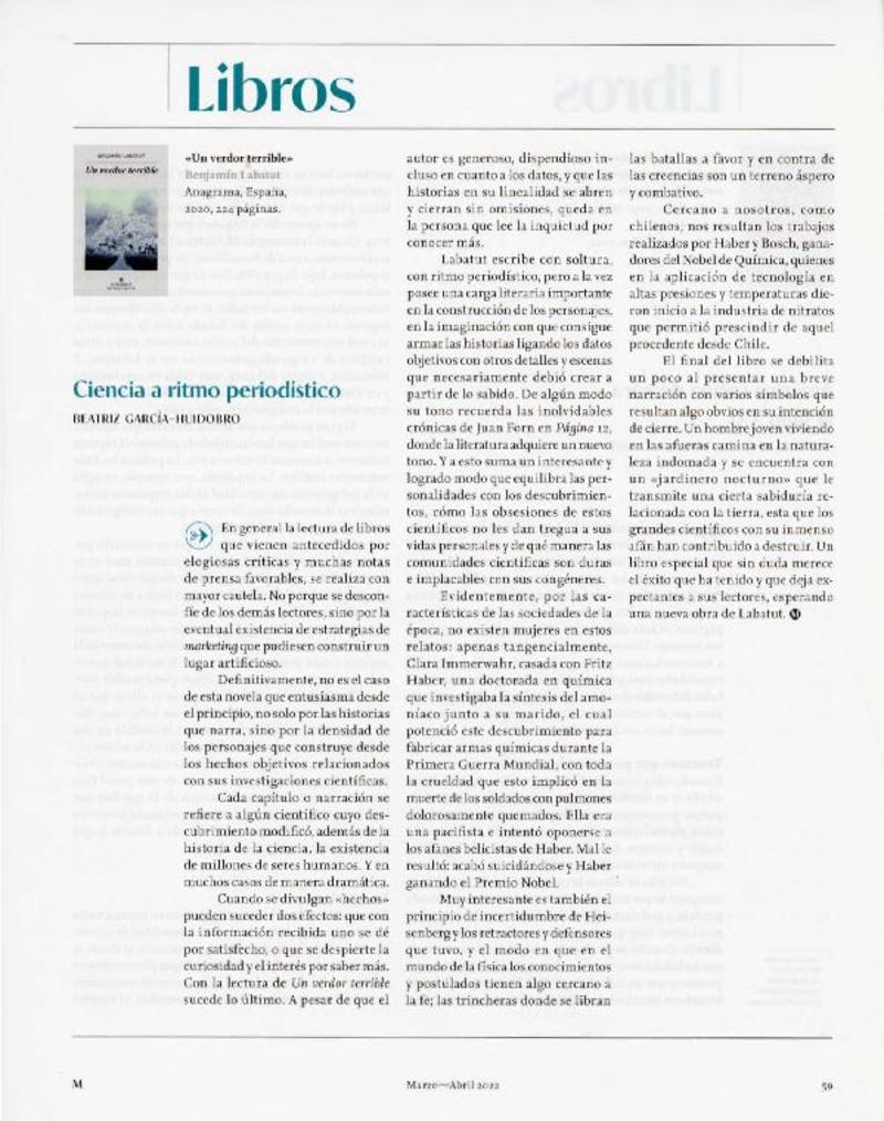 Libro : Un verdor terrible [artículo] Por Marcelo Soto.
