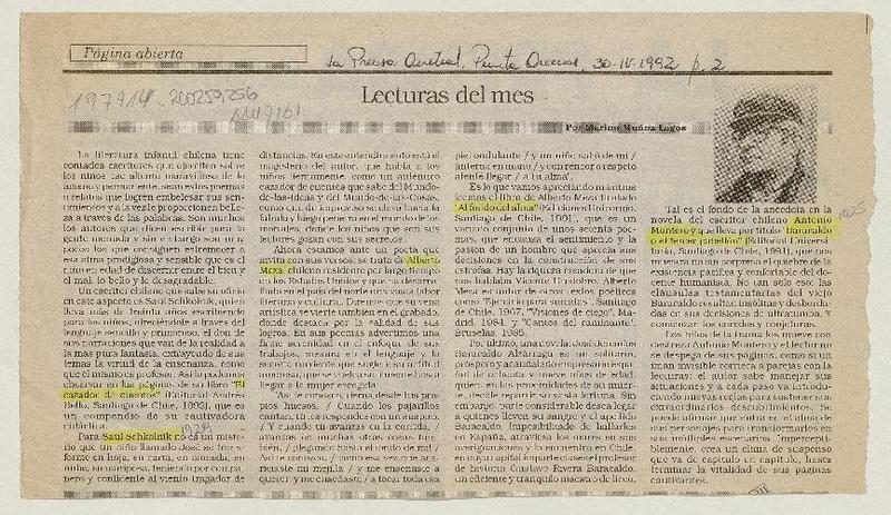 Lecturas del mes [artículo] Marino Muñoz Lagos.