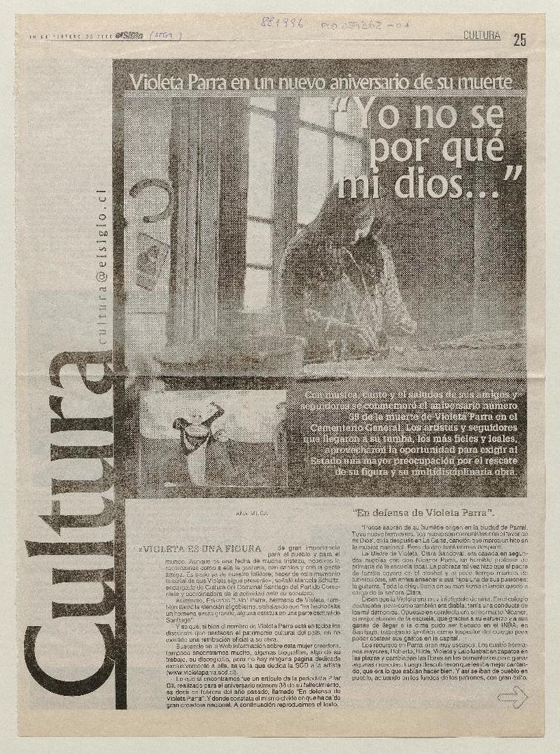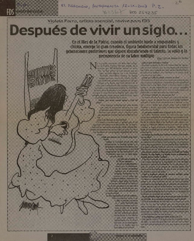 Después de vivir un siglo... Violeta Parra, Artista esencial, revive para FDS [artículo] : Víctor Bórquez Núñez.