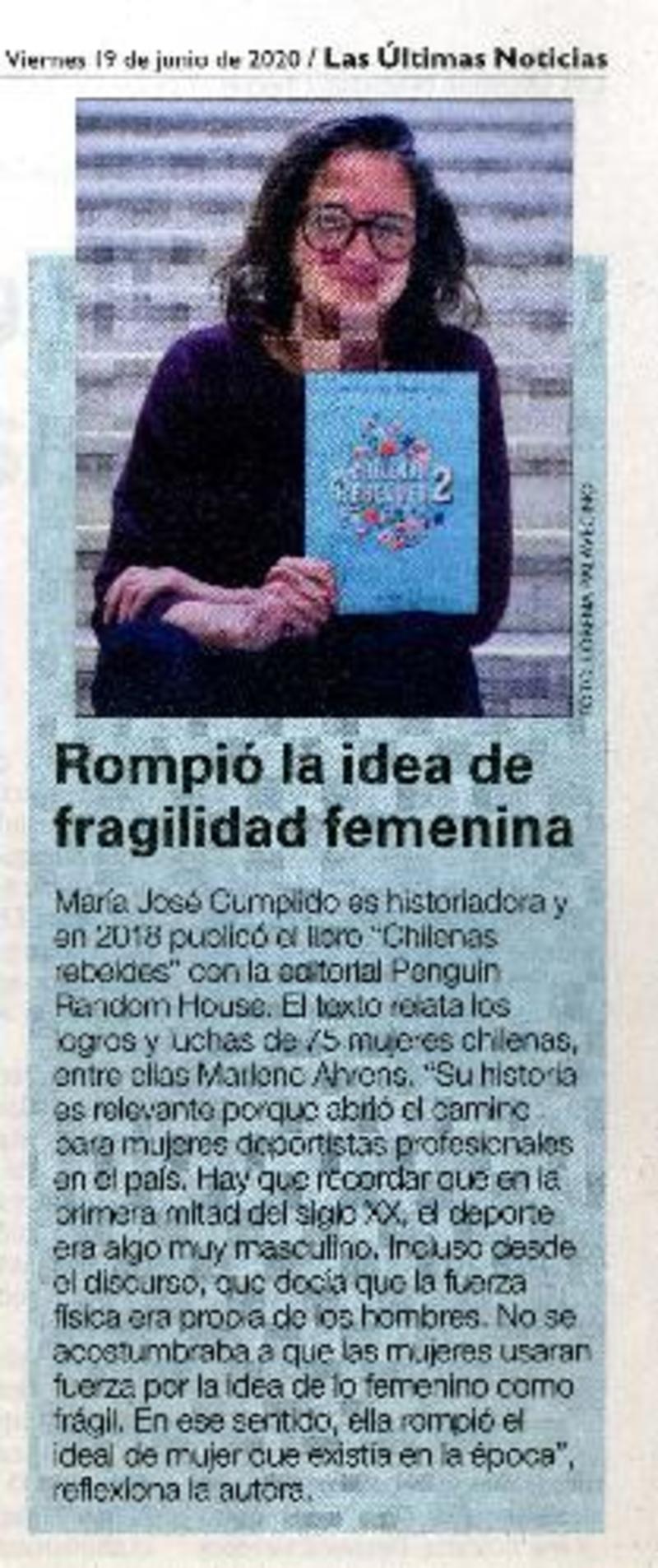 Autora de "chilenas rebeldes" María José Cumplido [artículo] : Francisca Olivares.