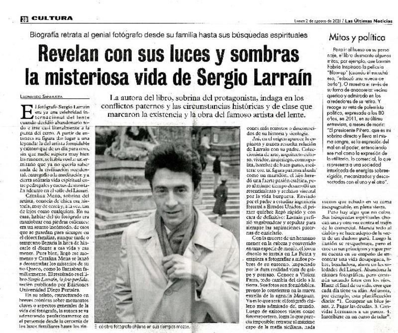 Revelan con sus luces y sombras la misteriosa vida de Sergio Larraín [artículo] Leonardo Sanhueza.