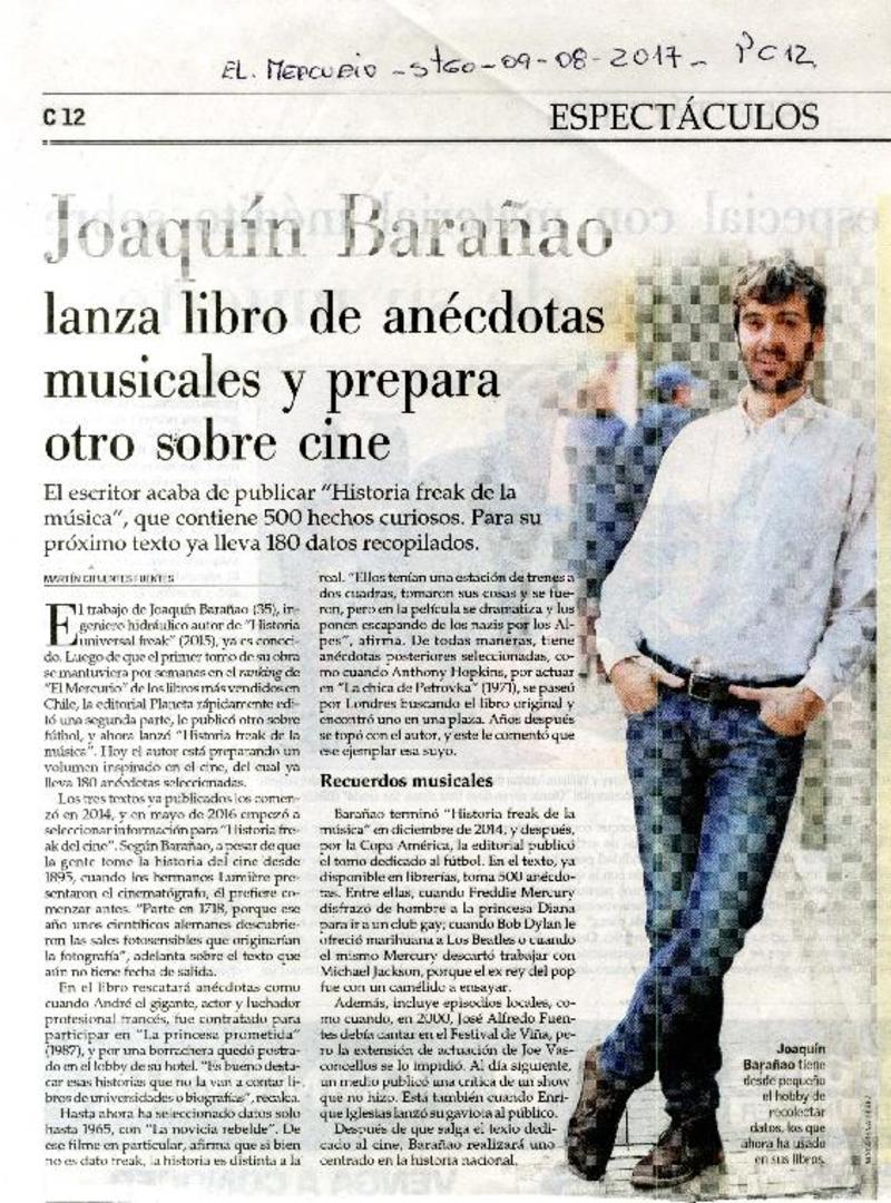 Joaquín Barañao lanza libro de anécdotas musicales y prepara otro sobre cine [artículo] Martín Cifuentes Fuentes.