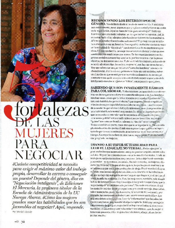 Fortalezas de las mujeres para negociar [artículo] Muriel Alarcón.