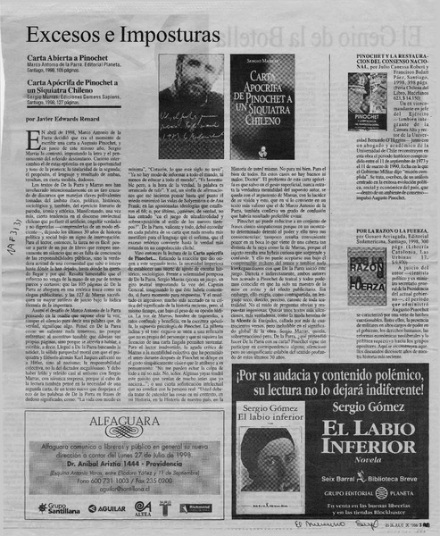 Excesos e imposturas [artículo] Javier Edwards Renard.
