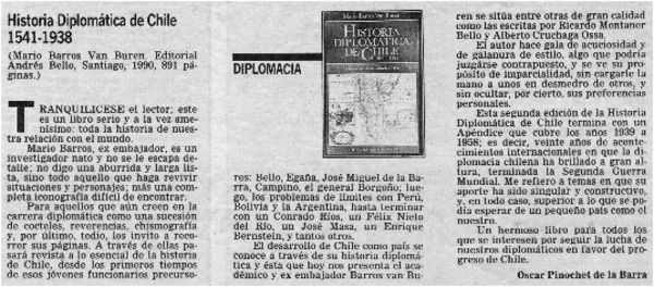 Historia diplomática de Chile 1541-1938 [artículo] Oscar Pinochet de la Barra.