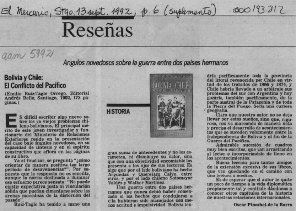Bolivia y Chile, el conflicto del Pacífico [artículo] Oscar Pinochet de la Barra.