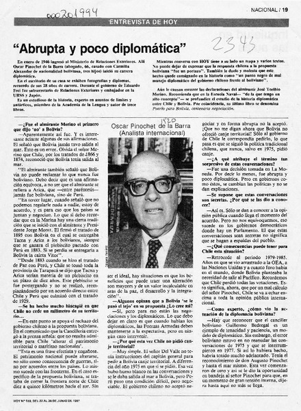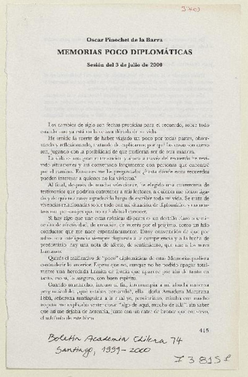 Memorias poco diplomáticas [artículo] Oscar Pinochet de la Barra.