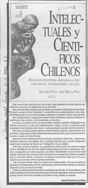 Intelectuales y científicos chilenos [artículo] Oscar Pinochet de la Barra.