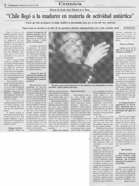 "Chile llegó a la madurez en materia de actividad antártica" [entrevista] [artículo] : Rolando Martínez Vergara.