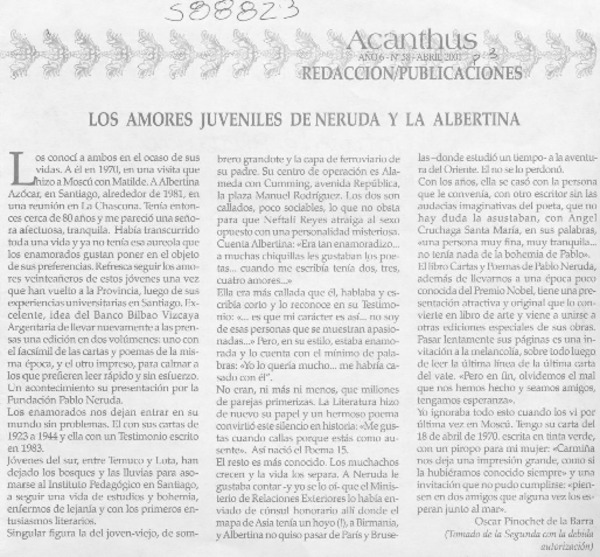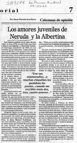Los amores juveniles de Neruda y la Albertina [artículo] Oscar Pinochet de la Barra