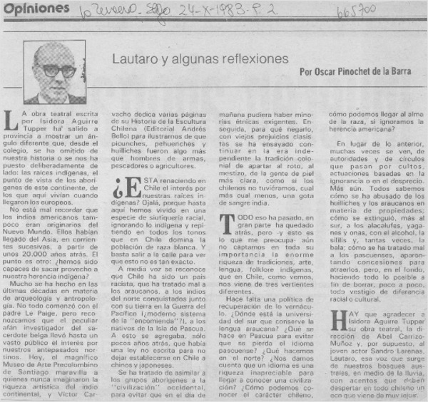 Lautaro y algunas reflexiones [artículo] Oscar Pinochet de la Barra.