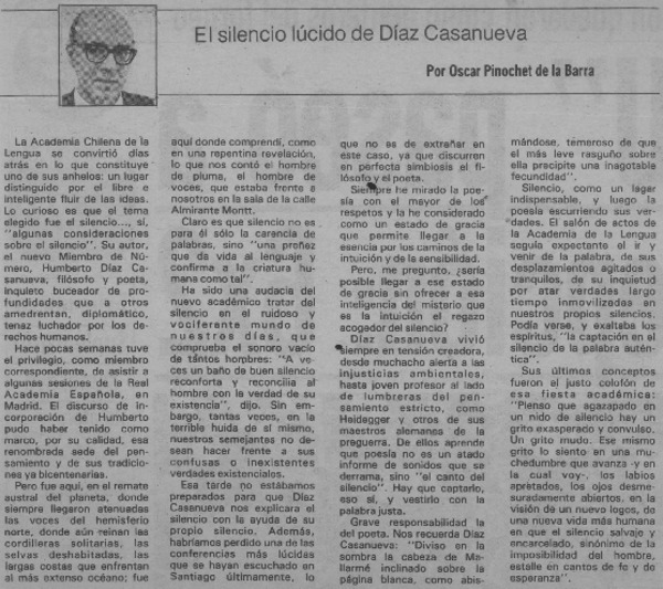 El silencio lúcido de Díaz Casanueva [artículo] Oscar Pinochet de la Barra.