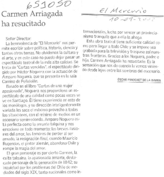 Carmen Arriagada ha resucitado [artículo] Oscar Pinochet de la Barra