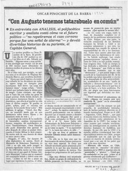 Autores chilenos - Pinochet de la Barra, Oscar - Entrevista