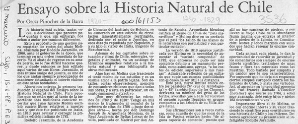 Ensayo sobre la Historia Natural de Chile [artículo] Por Oscar Pinochet de la Barra.