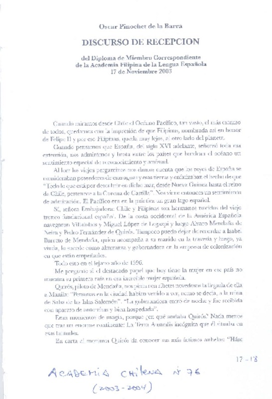 Discurso de recepción [artículo] Oscar Pinochet de la Barra.