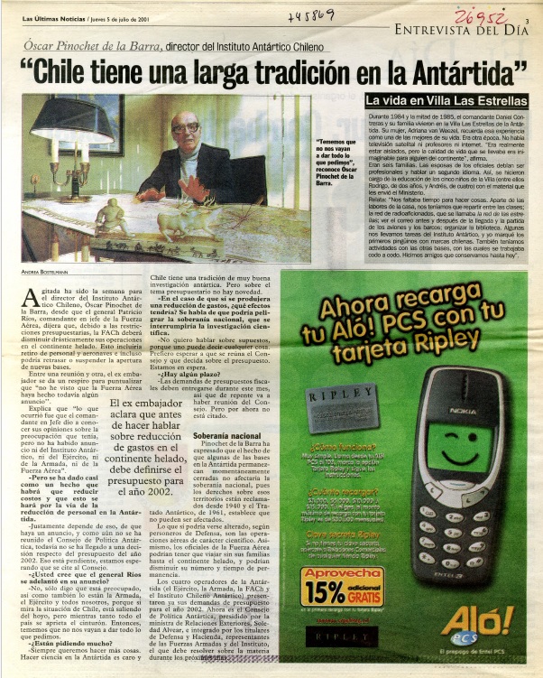 Chile tiene una larga tradición en la Antártida" [entrevista] [artículo] : Andrea Bostelmann.