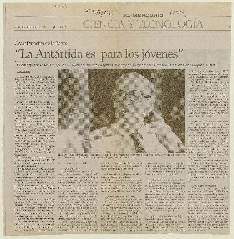 Autores chilenos - Pinochet de la Barra, Oscar - Entrevista - Medio siglo de recuerdos antárticos