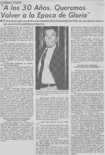 Autores chilenos - Entrevista - Por Joel - Tessier, Domingo
