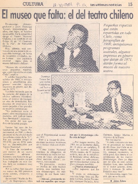 El museo que falta: el del teatro chileno : [entrevista] [artículo] Jaime Adaro.