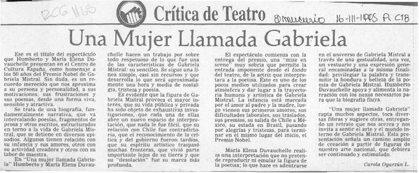 Una mujer llamada Gabriela [artículo] Carola Oyarzún L.