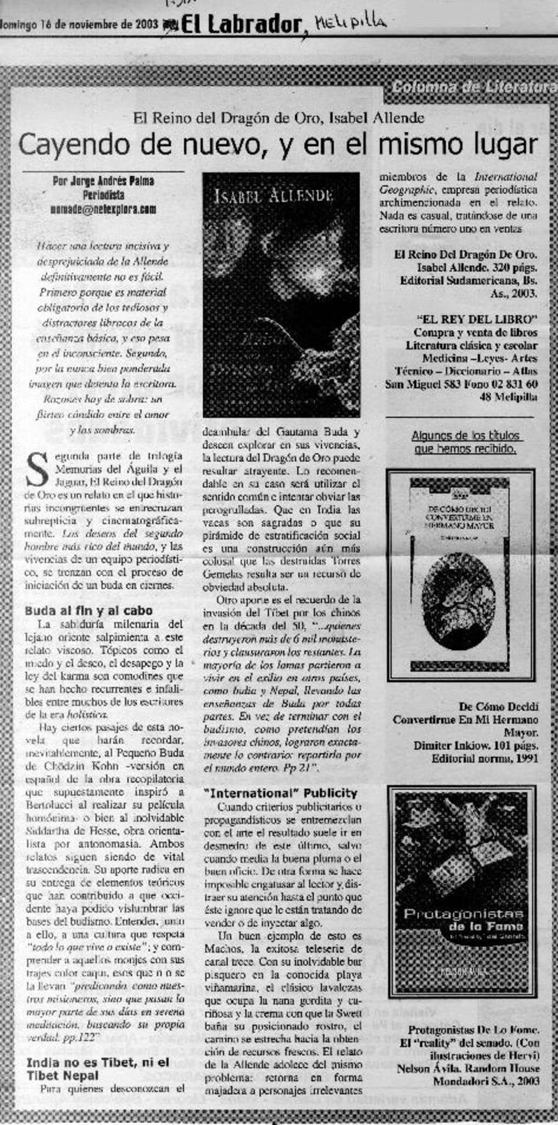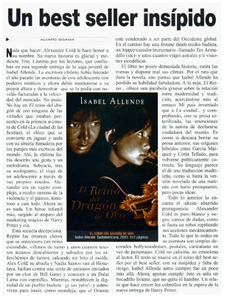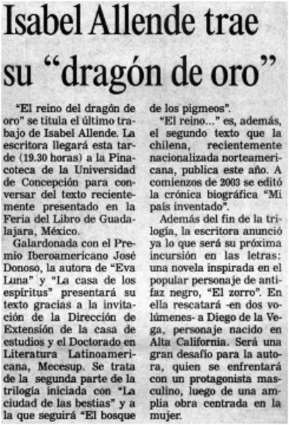 El reino del dragón de oro, Isabel Allende [artículo] Claudia Andrea Contreras.