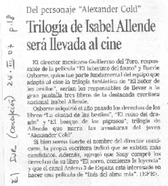 Trilogía de Isabel Allende será llevada al cine [artículo].