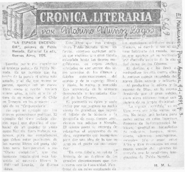La espada encendida" [artículo] Marino Muñoz Lagos.